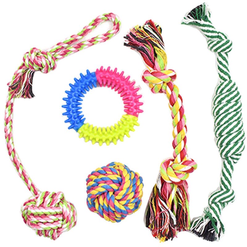 Set 5 jucarii pentru caini, ASKSA, Funii din bumbac natural, Multicolor